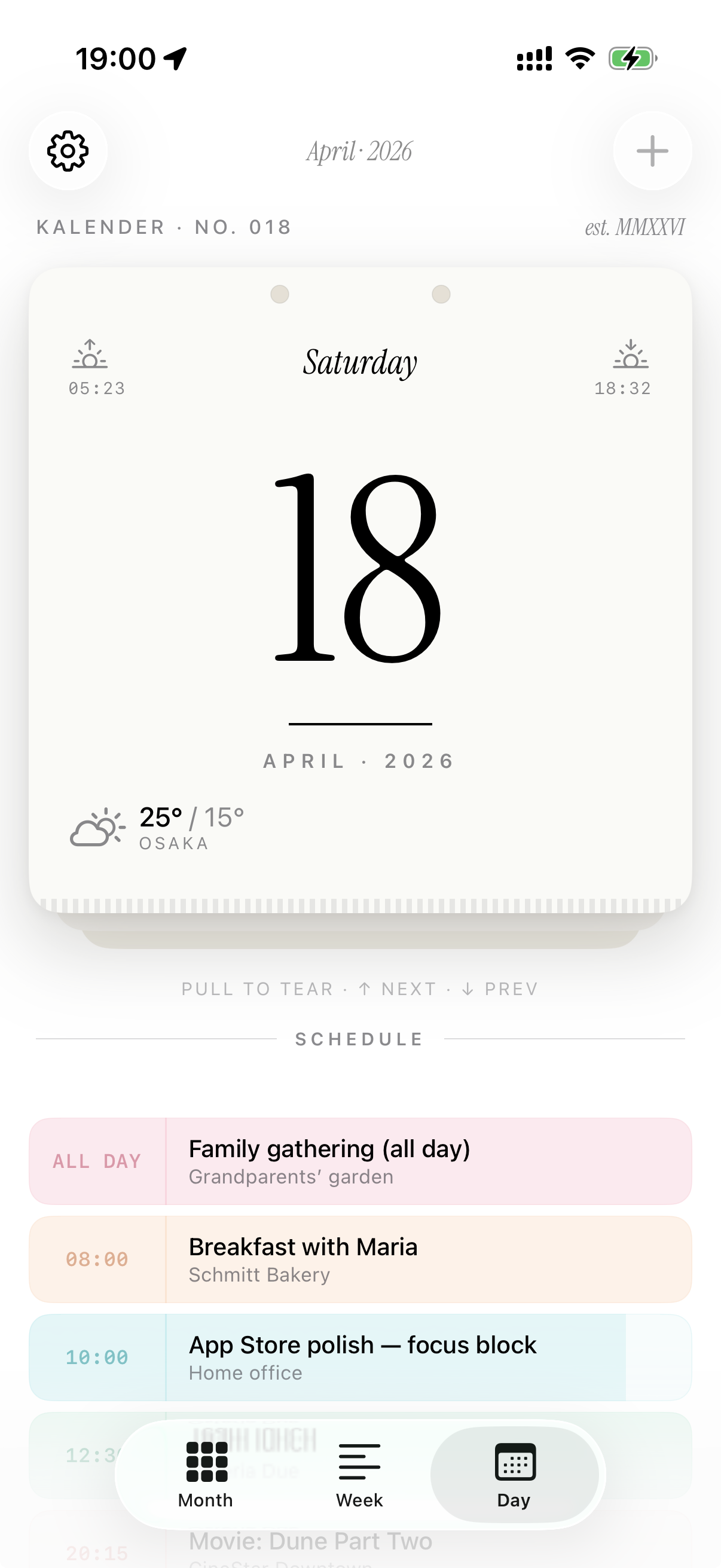 A calendar that feels nice to interact with on iOS: vertical scrolling, smooth gestures, restrained visual design. Multi-platform via shared SwiftUI codebase (iOS first, then iPadOS/macOS).