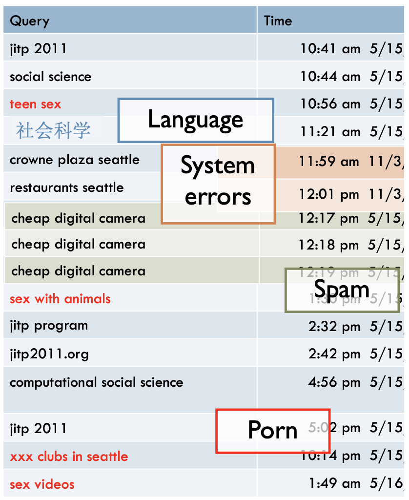 🧹 Data cleaning = the process of separating irrelevant from relevant data How? keep track of what you do remove spam/errors etc. 📖 Example: