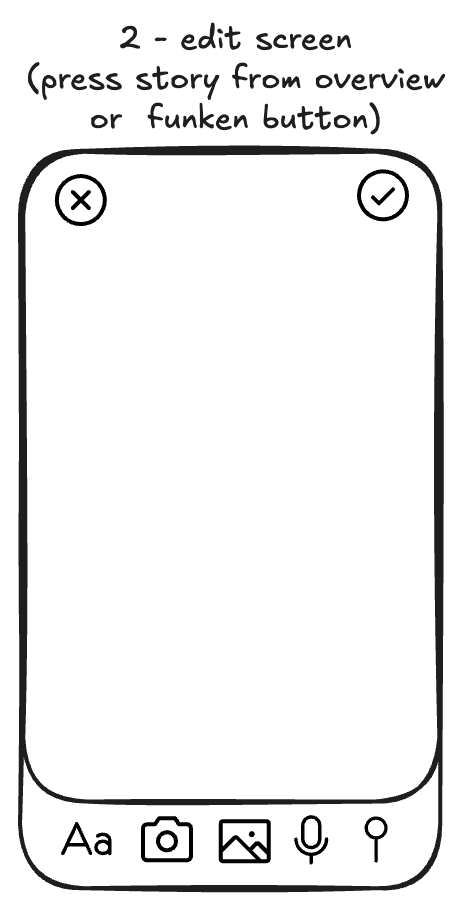 - “Ok” (-> adds the image/video as the background of the story and exists the camera action mode) and