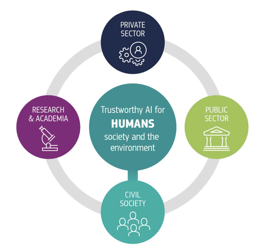 📃 High-Level Expert group on Artificial Intelligence, 2019 § Parts § Using trustworthy AI to build a positive impact in Europe Leveraging Europe’s enablers or trustworthy AI Empower humans by increasing knowledge & awareness of AI Measure & monitor societal impact of AI Upskill and reskill the current workforce Multi-Stakeholder Approach1 § 🔗 Links 📃 Digital agenda Footnotes § VL10 DS lecture slides ↩