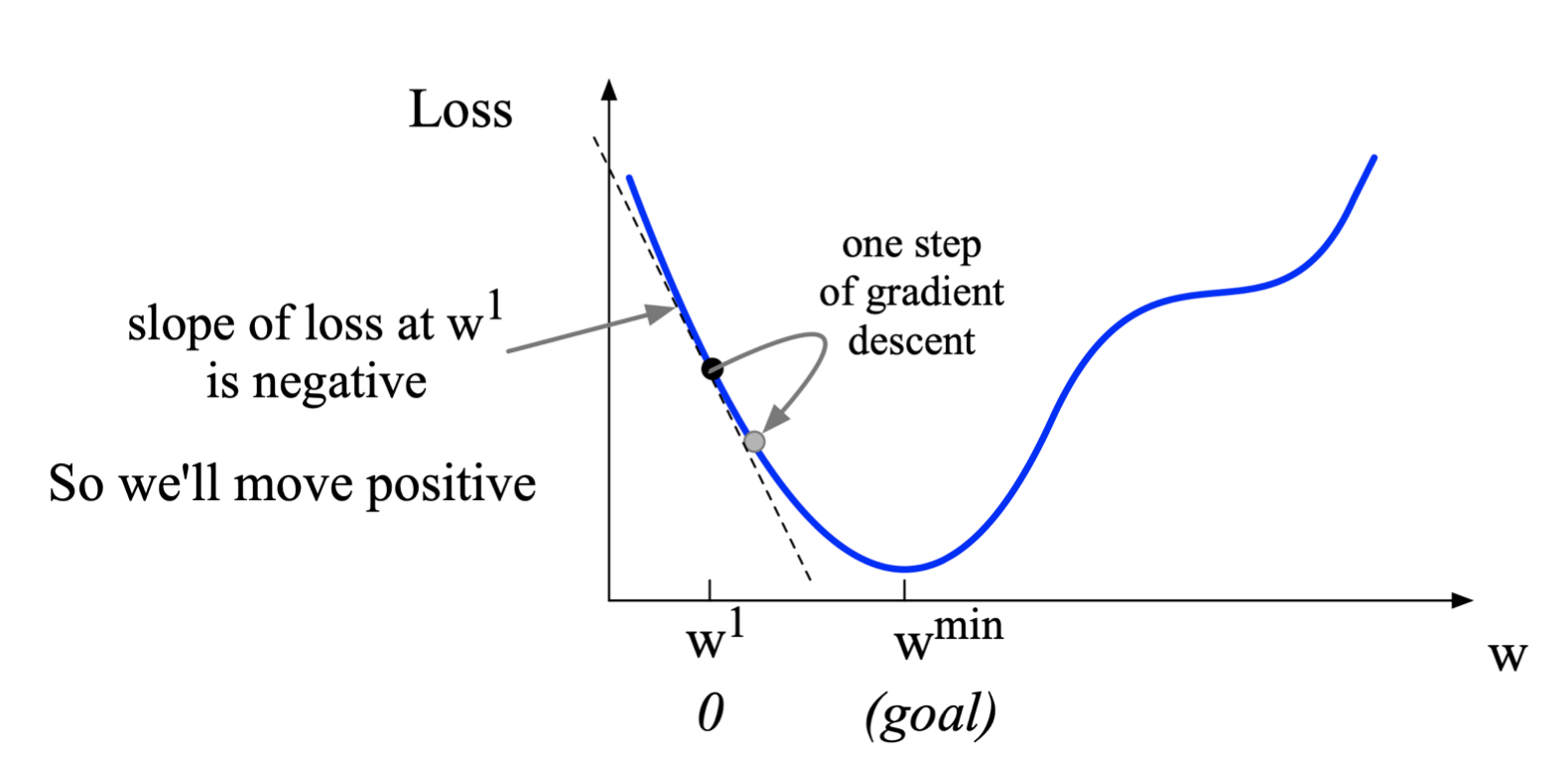 - Gradient descent: move in the opposite direction of where the gradient points at